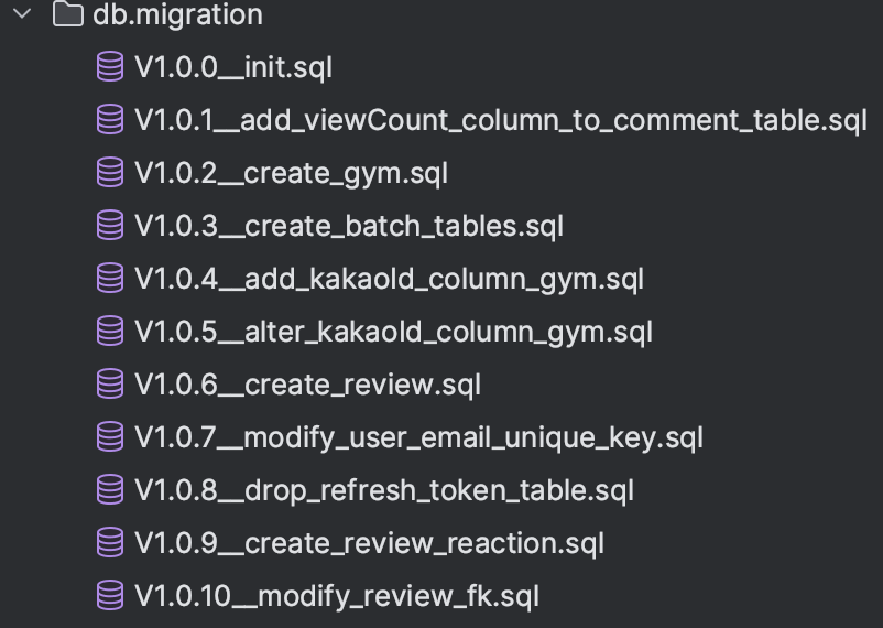 - SQL : Flyway의 스크립트는 SQL로 작성된다. SQL에서는 테이블 간의 연관 관계를 표현하기 위해 외래 키(Foreign Key)를 사용한다. 외래 키는 한 테이블의 필드가 다른 테이블의 기본 키(Primary Key)를 참조함으로써 두 테이블 사이의 연관 관계를 정의한다.