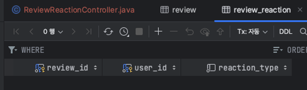 다음으로는 FK로 연관관계를 맺어준 review_reaction 테이블이다.