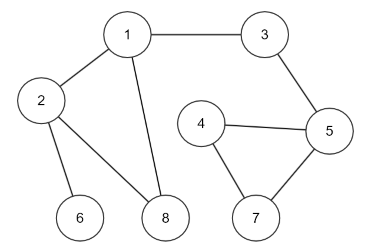 int[][] graph = {{}, {2,3,8}, {1,6,8}, {1,5}, {5,7}, {3,4,7}, {2}, {4,5}, {1,2}};