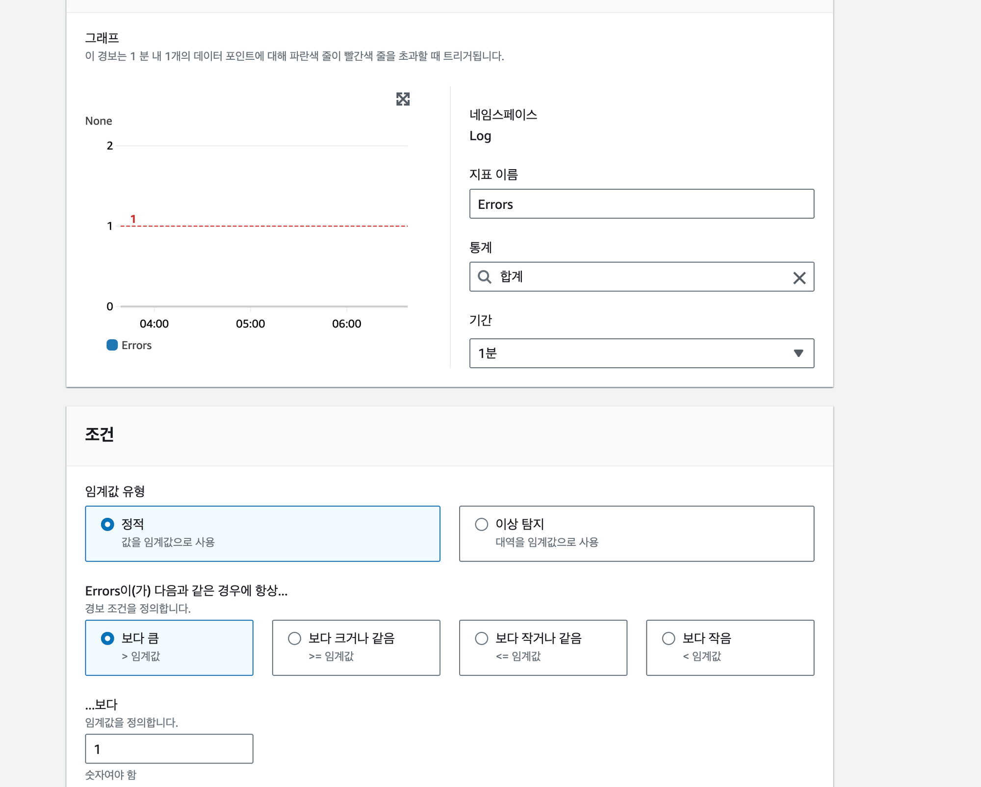 나는 1분 동안 ERROR가 2번 이상 발생하면 경보 상태가 되도록 설정했다.