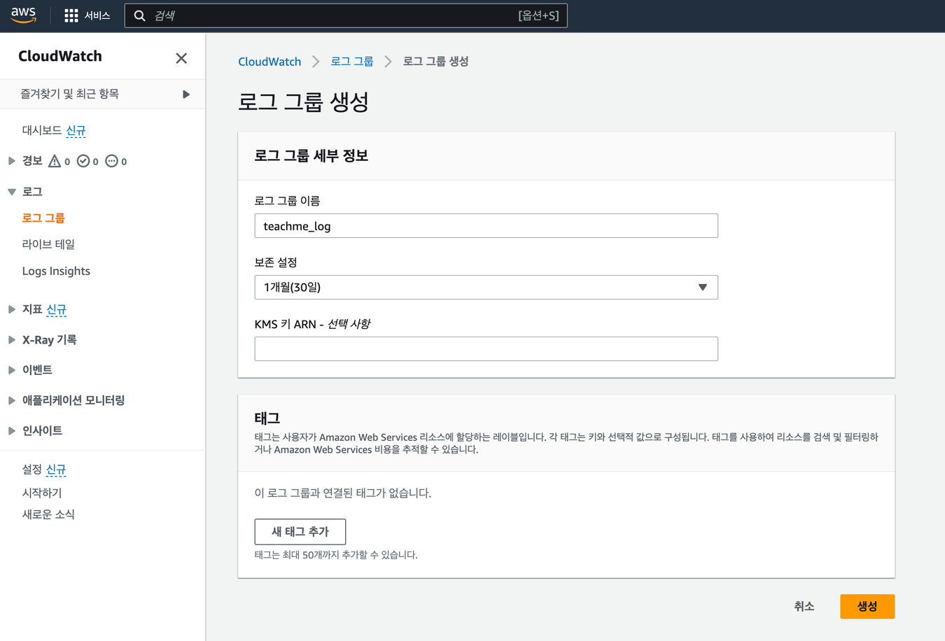 CloudWatch 로그 그룹 생성