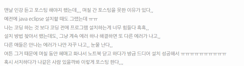 항상 개발할 때 제일 화났던 게 설치해서 버전 맞추느라 시간 다 보내서 정작 아무것도 시작 못할 때... 였는데 세상 참 좋아졌네요 ! ^^ -> 그냥 내가 몰라서 안한 거..