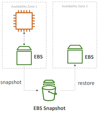 EBS 볼륨은 특정 AZ에 속하기 때문에 다른 AZ에 연결할 수 없다고 했다. 이 때, 다른 AZ에서 쓰기 위해 스냅샷을 사용할 수 있다.