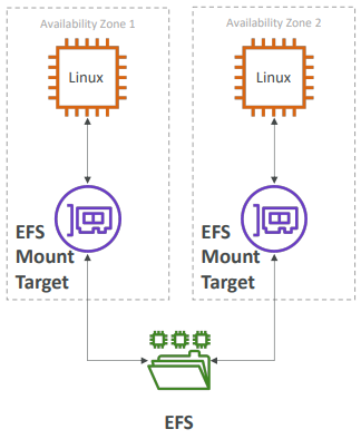 - 여러 AZ에 있는 EC2 인스턴스에 동시에 마운트 가능한 관리형 NFS (Network file System)