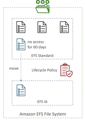 - EFS-IA : infrequent access(자주 사용 안하는 파일), 스토리지 비용이 저렴하다.