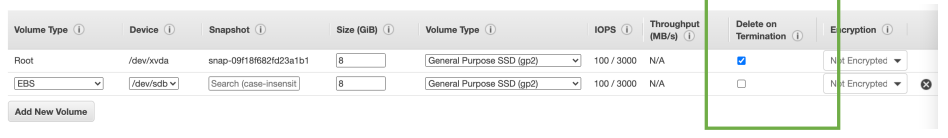 - default : 다른 EBS 볼륨은 삭제되지 않는다. (속성 비활성화된 상태 -> 둘 다 활성화 상태가 삭제되는 것임)